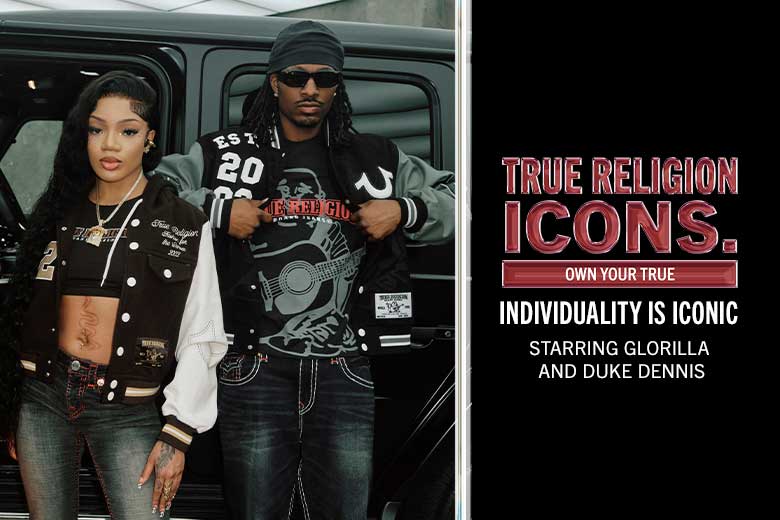 Shop True Religion's 2025 ICONS Collection – Denim, Activewear & Bold Looks with GloRilla & Duke Dennis.
