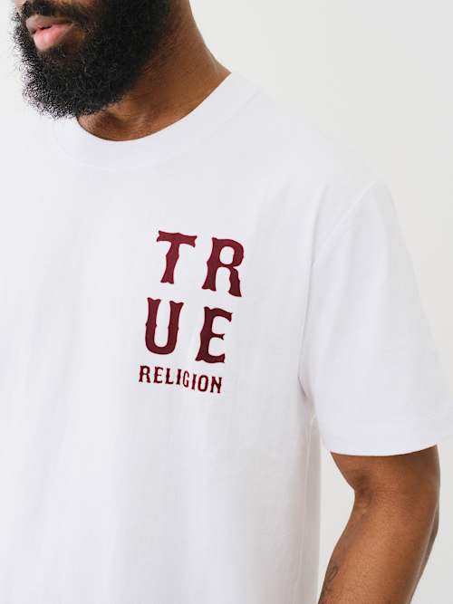 flocked true religion puff print tee