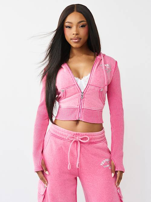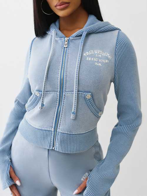 ribbed big t shrunken zip hoodie
